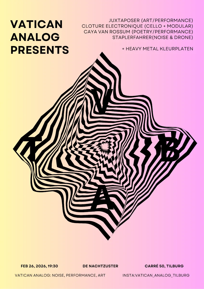 Juxtaposer is het alias van beeldend kunstenaar Matijs van de Kerkhof. Hij werkt op het snijvlak van muziek, performance en poëzie, met wortels in de lo fi/homerecording, literaire tradities en experimentele klankkunst. Met live vocals, bandopnames en filmprojecties worden verhalen verteld in songs met o.a vervreemdende elektronica, melancholische jazz, 80s synths en Brechtiaanse zang. Een optreden ontvouwt zich als een muzikale mixtape van stijlen en vormen en wisselt voortdurend van vorm en sfeer.
